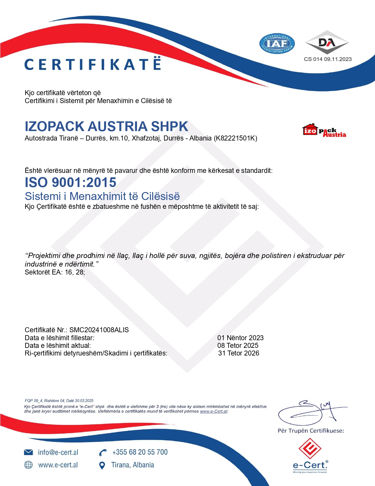 IZOPACK AUSTRIA prodhon materiale ndërtimi sipas nevojave dhe kërkesës së tregut duke ofruar padiskutim edhe cilësinë sipas standarteve më të larta europiane.