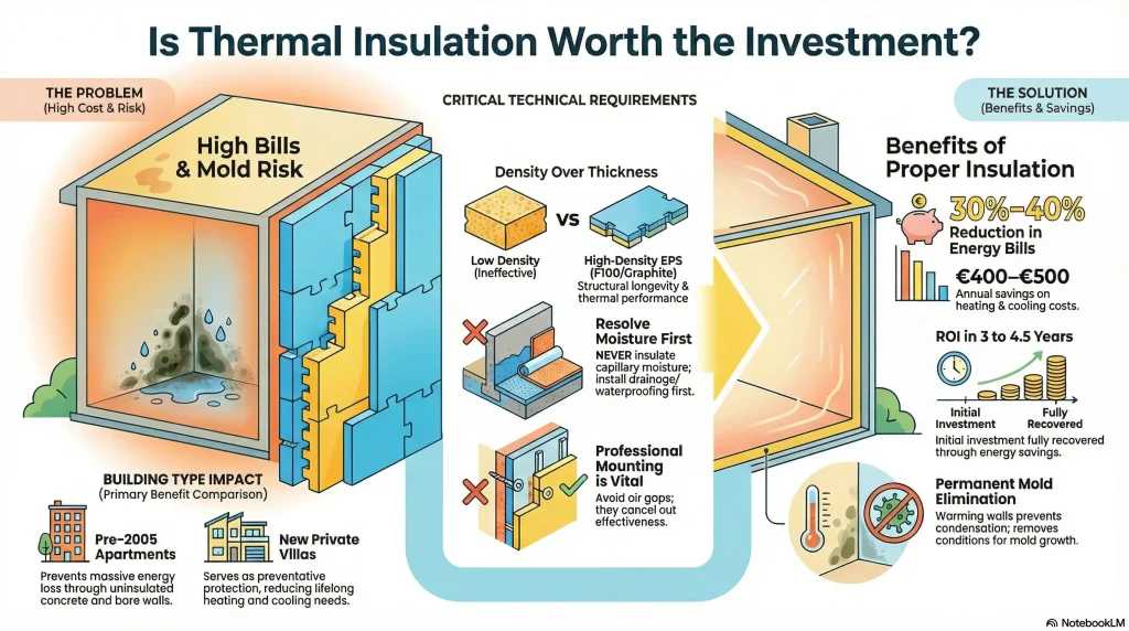 Kjo është arsyeja pse termoizolimi nuk është shpenzim — është zhvendosje kostoje nga çdo muaj, në një investim të vetëm.